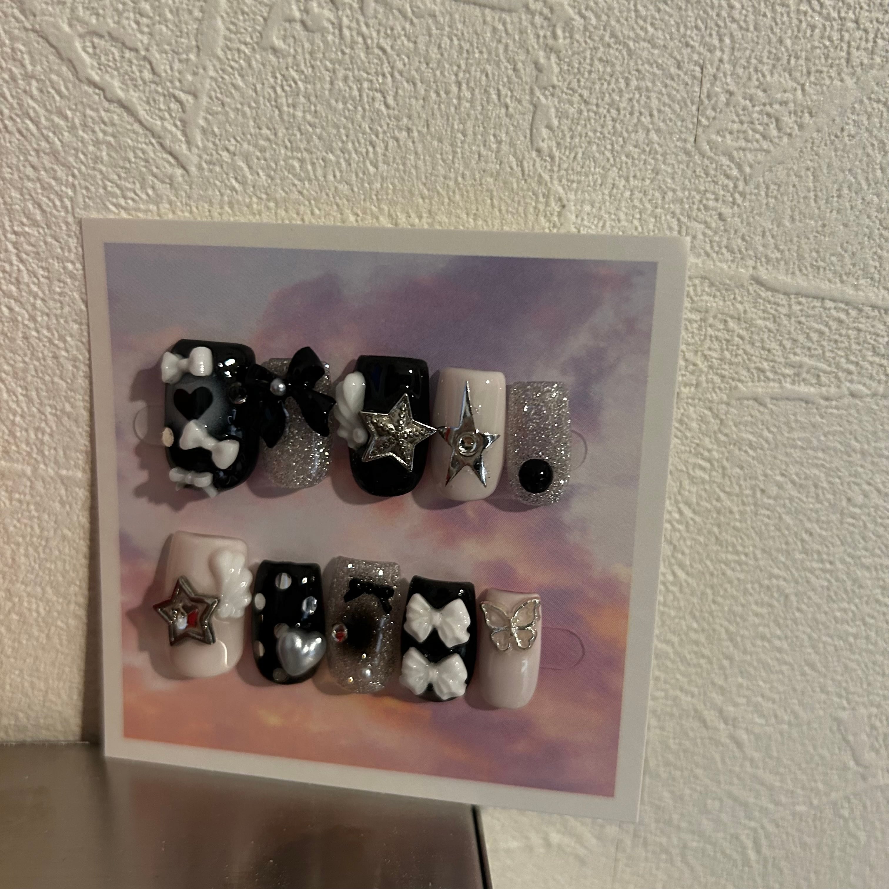 付属品:ネイルチップ10枚1セット、ネイルチップ用粘着シール1セット分、着用手順が記載されているカード