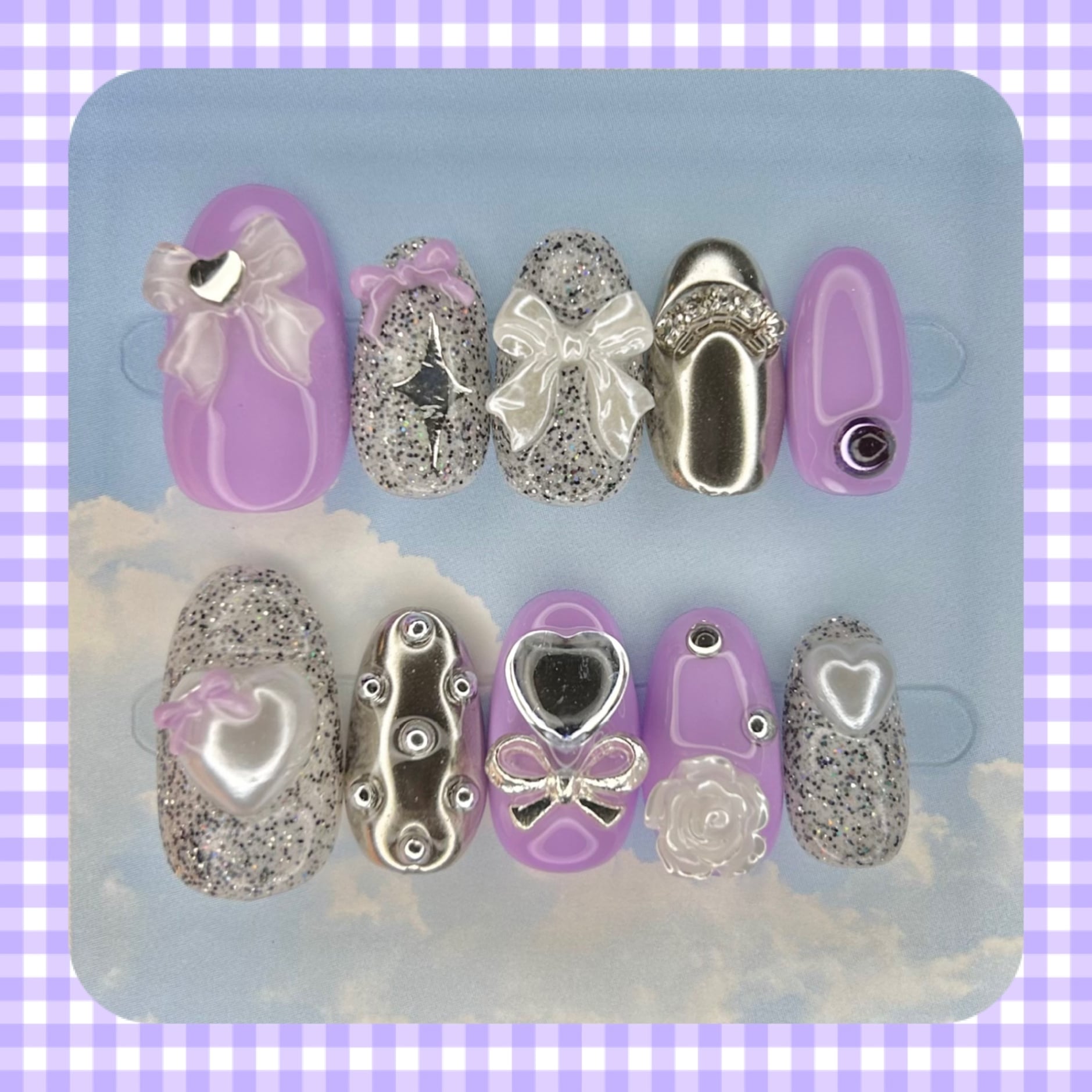 付属品:ネイルチップ10枚1セット、ネイルチップ用粘着シール1セット分、着用手順が記載されているカード
