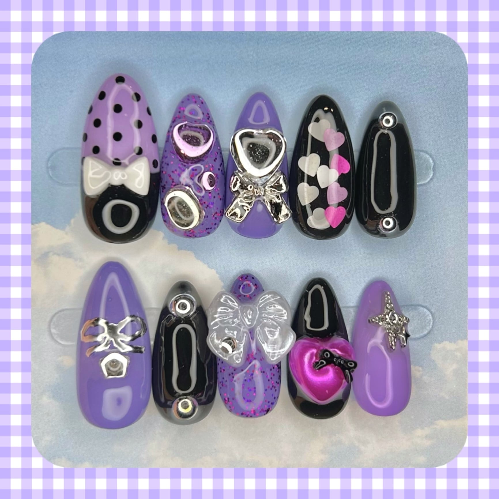 付属品:ネイルチップ10枚1セット、ネイルチップ用粘着シール1セット分、着用手順が記載されているカード