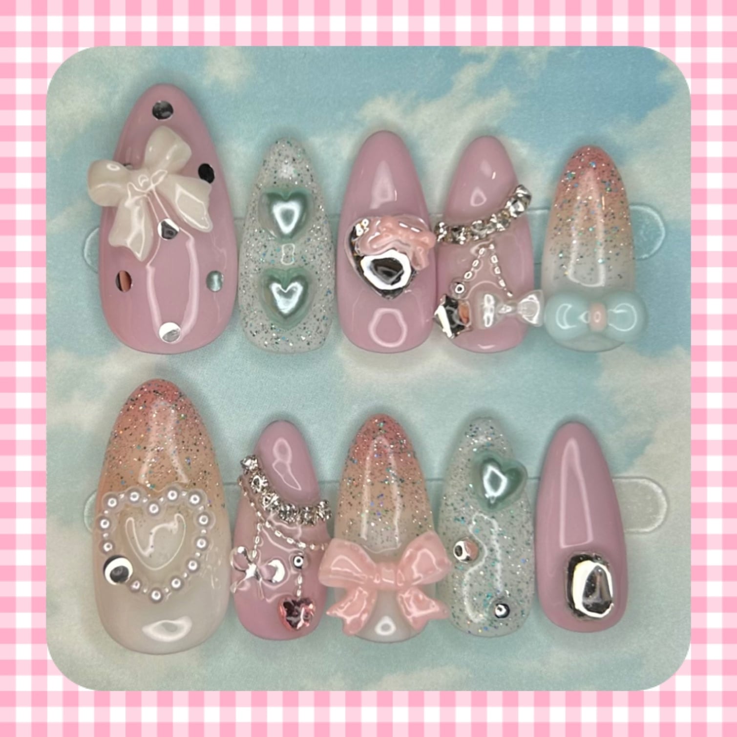 チェーンのアクセサリー風とグラデーションがポイントのデザインです♪