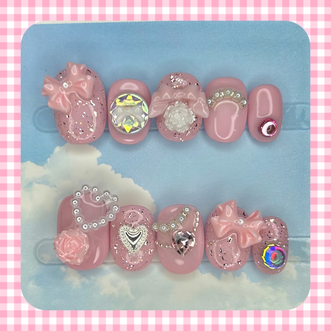 付属品:ネイルチップ10枚1セット、ネイルチップ用粘着シール1セット分、着用手順が記載されているカード