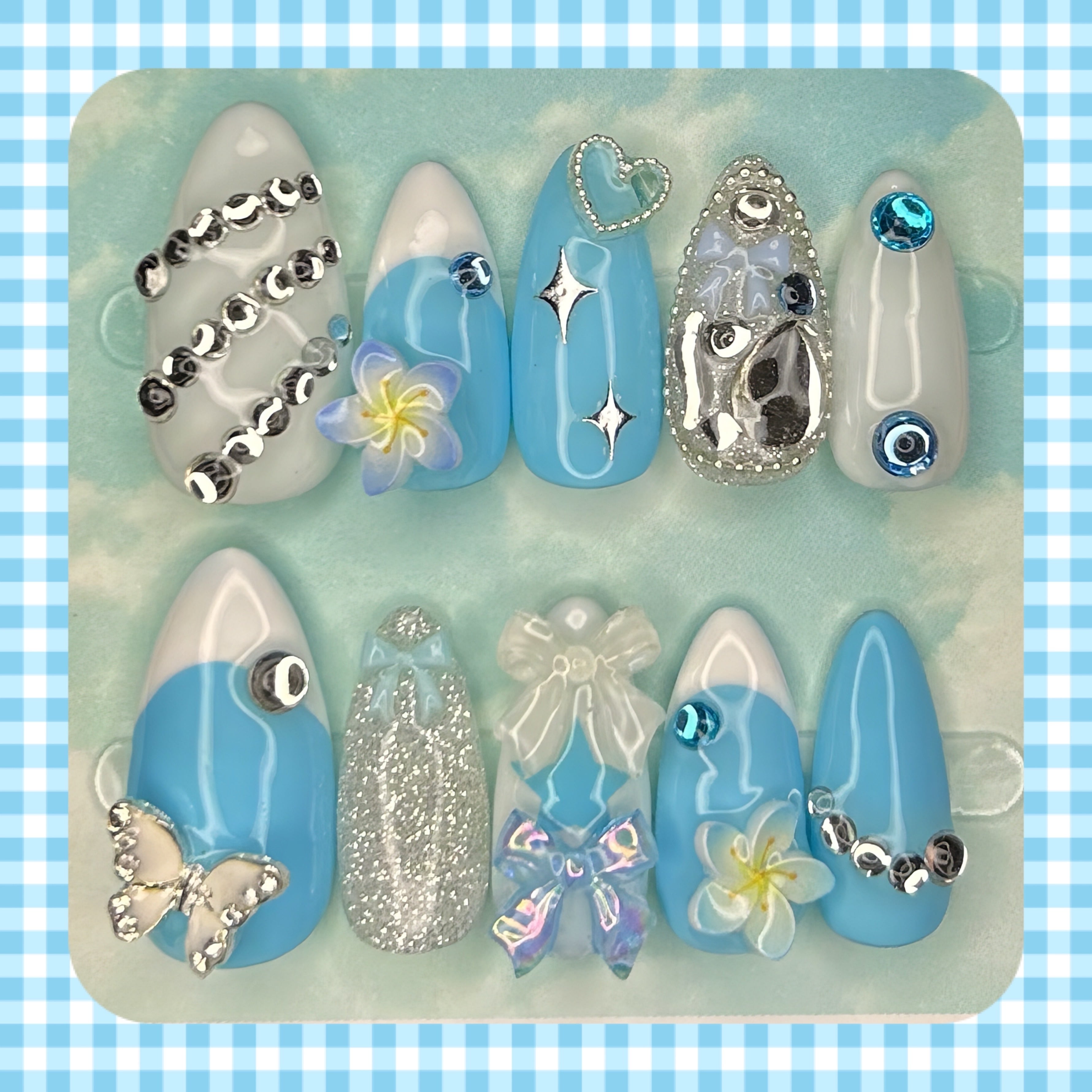 付属品:ネイルチップ10枚1セット、ネイルチップ用粘着シール1セット分、着用手順が記載されているカード
