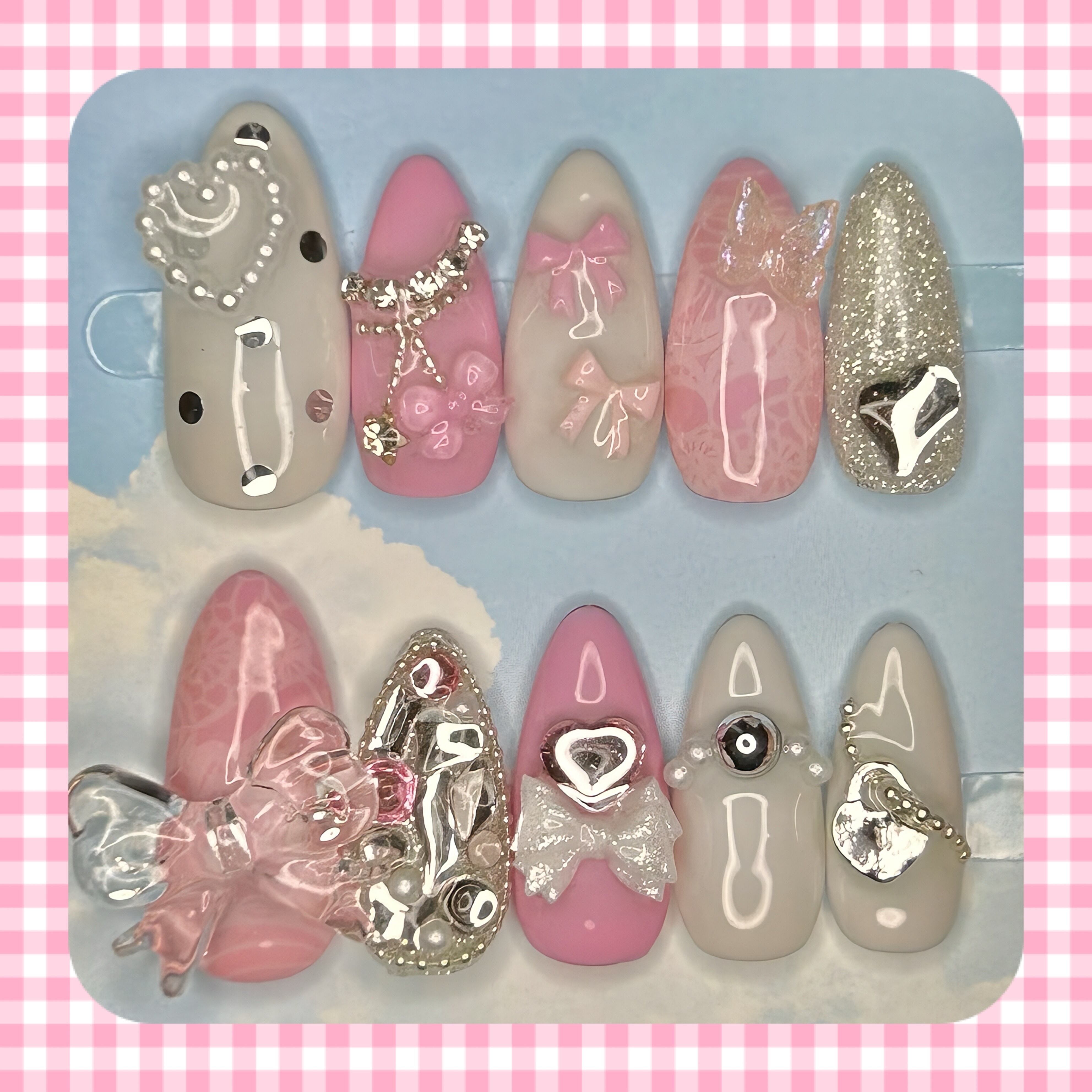 付属品:ネイルチップ10枚1セット、ネイルチップ用粘着シール1セット分、着用手順が記載されているカード